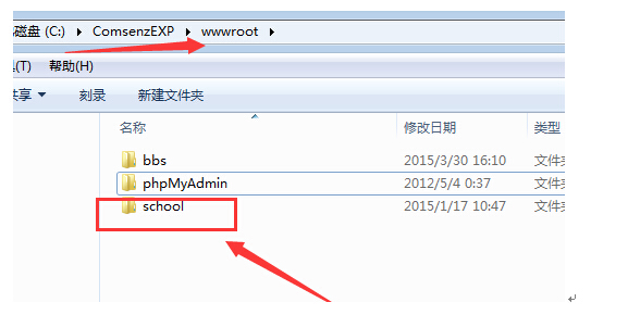 进入套件的这个wwwroot目录,将国微网站程序代码放到一个自己任意创建的文件夹里面,我们创建命名为school,最好是便于自己记忆 的
