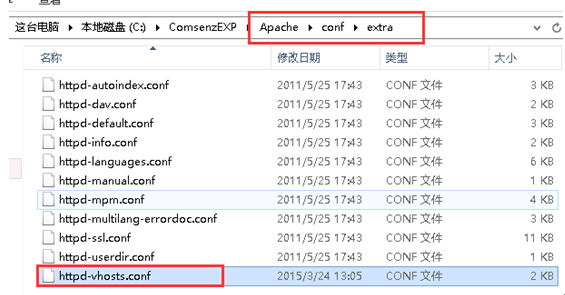 A、进入此路径,用记事本打开httpd-vhosts.conf 文件